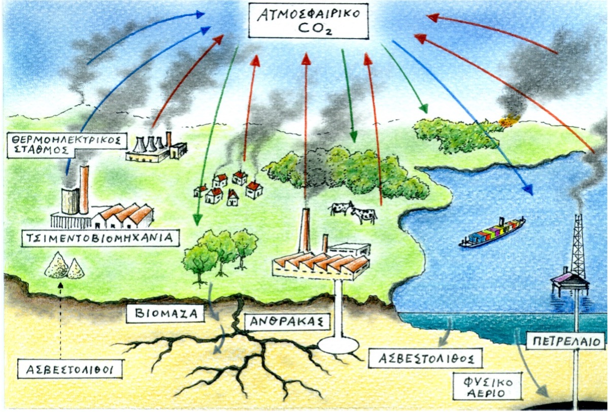Τα ζωντανά όντα παίρνουν σχεδόν όλο τον άνθρακα από τον άνθρακα διοξείδιο, είτε από την ατμόσφαιρα, είτε διαλυμένο στο νερό. Η φωτοσύνθεση στα πράσινα φυτά και στο φωτοσυνθετικό πλαγκτόν χρησιμοποιεί ενέργεια από τον ήλιο, CO2 και H2O και παράγει υδατάνθρακες και Ο2. Το οξυγόνο απελευθερώνεται στην ατμόσφαιρα, το γλυκό νερό και τις θάλασσες. Οι υδατάνθρακες χρησιμοποιούνται, μαζί με άζωτο, φώσφορο και άλλα στοιχεία, για να σχηματίσουν τα μόρια της ζωής. Τα ζωντανά όντα που δεν φωτοσυνθέτουν βασίζονται στην κατανάλωση άλλων έμβιων όντων για να χτίσουν τις δικές τους κυτταρικές δομές και να προσλάβουν την απαραίτητη ενέργεια για τα κύτταρα και τις λειτουργίες τους.